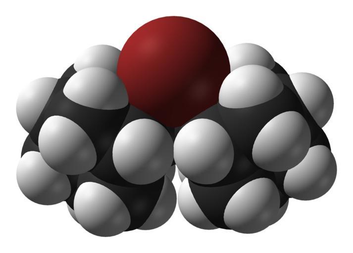 | Keywords: Biadamantylidene-bromonium-ion-from-xtal-1994-3D-vdW.png Space-filling model of the bromonium cation derived from the alkene biadamantylidene adamantylideneadamantanebromonium C<sub>20</sub>H<sub>28</sub>Br<sup>+</sup> From the crystal structure of bis adamantylideneadamantanebromonium hydroxonium tris trifluoromethanesulfonate dichloromethane solvate C<sub>20</sub>H<sub>28</sub>Br<sup>+</sup> <sub>2</sub> H<sub>3</sub>O<sup>+</sup> F<sub>3</sub>CSO<sub>3</sub><sup> ˆ’</sup> <sub>3</sub> CH<sub>2</sub>Cl<sub>2</sub> C<sub>44</sub>H<sub>61</sub>Br<sub>2</sub>Cl<sub>2</sub>F<sub>9</sub>O<sub>10</sub>S<sub>3</sub> Crystal structure by X-ray diffraction from http //dx doi org/10 1021/ja00085a027 J Am Chem Soc 1994 116 2448 “2456 Model constructed in http //www crystalmaker com/ CrystalMaker 8 1 Image generated in http //accelrys com/products/discovery-studio/visualization/discovery-studio-visualizer html Accelrys DS Visualizer Own 2009-06-03 Ben Mills Benjah-bmm27 Images by Ben Mills Space-filling models Bromonium ions |