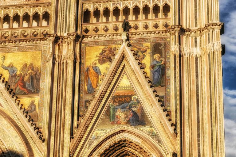Keywords: bible history religion maria himmelfahrt dom italy orvieto architecture church gothic faith middle ages mural picturesque ornament structure atmosphere detail gold precious