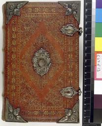 | Keywords: Biblia ... Deutsch, D. Martini Lutheri, mit ausgehenden Versiculn, kurtzen Summarien ... &c - Upper cover (c27f13).jpg Style Pointille comprising dots ; Caption Upper cover; Colour Red; Edge Gilt and gauffered exhibition history Decorative Technique Tooled in gold; Cover Material Goatskin includes morocco turkey etc Gold tooled with silver corner pieces and silver centrepieces with on the upper cover the letters SDM and on the lower cover the date Ao 1695 2 pairs of clasps object history Text 1683; Luneburg; Unspecified object type Cc-zero place of creation Binding Germany place of discovery Unspecified British Library image http //www bl uk/catalogues/bookbindings/LargeImage aspx RecordId 020-000008432 ImageId ImageId 43821 Copyright BL Biblia Deutsch D Martini Lutheri mit ausgehenden Versiculn kurtzen Summarien c Uploaded with GWToolset Biblia Deutsch D Martini Lutheri mit ausgehenden Versiculn kurtzen Summarien c - Upper cover c27f13 http //www webarchive org uk/bldatasets/bindings/9051_4 jpg Bookbinding 17th-century bookbinding British Library Bookbindings |