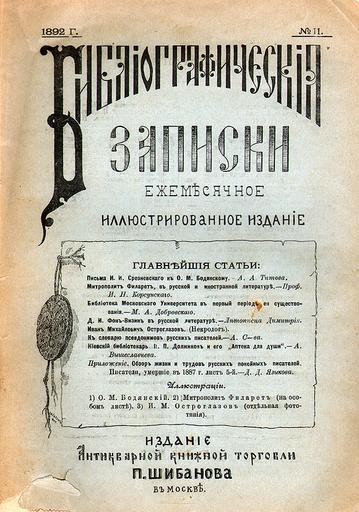 | Keywords: BibliographicAnnales.jpg Bibliographic Annales 1892 scanned by triumphato 1892 Author PD-old Smirnov Alexandr bibliograph Scientific journals of Russia Magazines of Russia 1892 Title pages from Russia Cover of book scanned by Triumphato Magazines of Russia to be categorised by name |