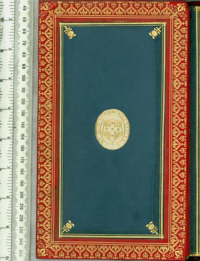 | Keywords: Bibliotheca Graeca et Latina - Doublure (G406).jpg Style Unspecified; Caption Doublure; Colour Unspecified; Edge Unspecified exhibition history Decorative Technique Unspecified; Cover Material Unspecified Green silk ribbon marker Doublures of coated blue paper and turn ins tooled in gold Ink ms note saying the book was given by Spencer to Thomas Grenville in 1802 Grenville's coat of arms in gold is pasted to the upper doublure object history Text 1784; Berlin; Spencer George John Second Earl Spencer 1758-1834 Grenville Thomas 1755-1846 object type Cc-zero place of creation Binding England place of discovery Unspecified British Library image http //www bl uk/catalogues/bookbindings/LargeImage aspx RecordId 020-000014347 ImageId ImageId 55871 Copyright BL Bibliotheca Graeca et Latina Uploaded with GWToolset Bibliotheca Graeca et Latina - Doublure G406 http //www webarchive org uk/bldatasets/bindings/doublure jpg 19th-century bookbinding Bookbinding British Library Bookbindings |