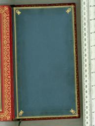 Keywords: Bibliotheca Graeca et Latina - Flyleaf (G406).jpg Style Armorial Leaf; Caption Flyleaf; Colour Red; Edge Gilt exhibition history Decorative Technique Tooled in gold; Cover Material Goatskin includes morocco turkey etc Green silk ribbon marker Doublures of coated blue paper and turn ins tooled in gold Ink ms note saying the book was given by Spencer to Thomas Grenville in 1802 Grenville's coat of arms in gold is pasted to the upper doublure object history Text 1784; Berlin; Grenville Thomas 1755-1846 Spencer George John Second Earl Spencer 1758-1834 object type Cc-zero place of creation Binding England place of discovery To research armorials see British Armorial Bindings Database sponsored jointly by the Bibliographical Society and the University of Toronto http //armorial library utoronto ca British Library image http //www bl uk/catalogues/bookbindings/LargeImage aspx RecordId 020-000014349 ImageId ImageId 53459 Copyright BL Bibliotheca Graeca et Latina Uploaded with GWToolset Bibliotheca Graeca et Latina - Flyleaf G406 http //www webarchive org uk/bldatasets/bindings/G406fly jpg 19th-century bookbinding Bookbinding British Library Bookbindings |
