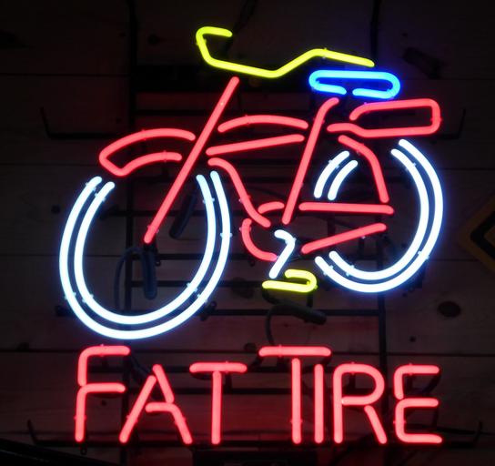 Keywords: bicycle neon lighting wheels tires sign urban light shield night