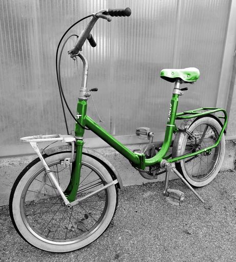 Keywords: bicycle old green vintage wheels saddle handlebars pedals