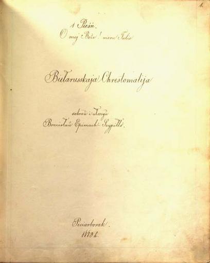 | Keywords: Biełarusskaja Chrestomatija Tytulny list 1889 rok.jpg Б аніслаў Ігнатавіч Эпімах-Шыпіла Тытульны ліст «Бела ускай х эстаматыі» 1889 scanned Б аніслаў Ігнатавіч Эпімах-Шыпіла Custom license marker 2012 12 03 PD-RusEmpire Uploaded with UploadWizard Branislaŭ Epimach-Šypila 1889 book covers |