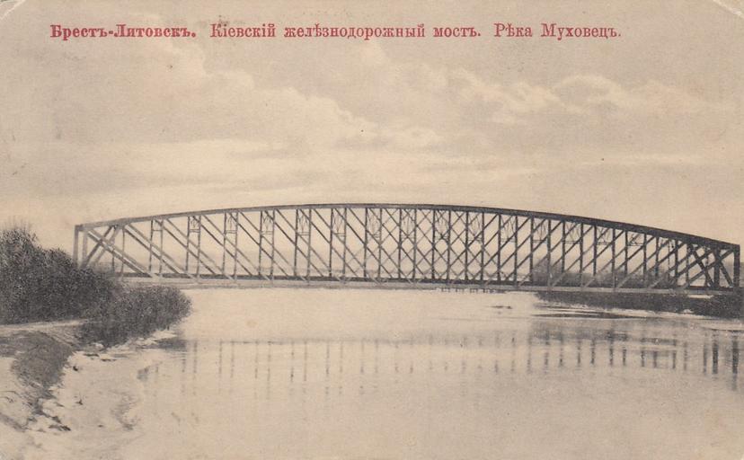 Keywords: Bieraście, Muchaviec. Берасьце, Мухавец (XX).jpg Бе асьце Bieraście ака ухавец Muchaviec Кіеўскі чыгуначны мост www delcampe net author < 1915 PD-old-70 History of Brest Belarus