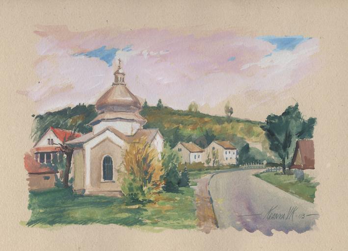 Keywords: bieszczady chapel picture watercolor henry cudziło
