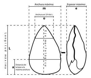 | Keywords: Bifaz dimensiones.svg of an acheulean hand axe Dimensiones básicas para describir un bifaz achelense Mensurations basiques pour un biface acheuléen own 2007-01 José-Manuel Benito Álvarez España > Locutus Borg en Hand axe fr Biface es Bifaz Acheulean Drawings of stone hand axes |