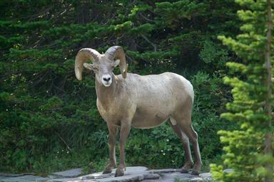 MAKE A MEME View Large Image Bighorn sheep move in groups in Glacier's alpine and east side. Rams grow enormous horns (which differ from antlers in that they do not drop off yearly) that they use to batter each other during the rut every fall in competitions for mates. ...