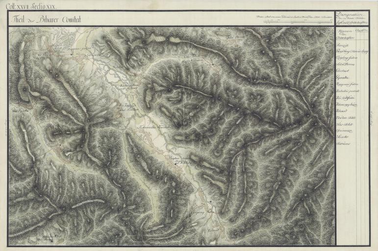 Keywords: BihorSolnocCrasna Josephinische Landesaufnahme pg27-19.jpg wikitable style margin 1em auto 1em auto width 80 Name shown on the map<br>Nume din hartă Administrative unit<br>Unitate administrativă Romanian name<br>Numele românesc Hungarian name<br>Numele unguresc German name<br>Numele german Country today<br>Ţara de astăzi - Borzik Bihar Burzuc Borsig Borszeg Borzik Romania - Bogdány Szovár Hegy Bihar Picleu Sarhighea Piclău Szóvárhegy Bogdánszóvárhegy Romania - Czigányfalva Bihar Ţigăneştii de Criş Ţigăneşti Cigányfalva Romania - FelsõDerna Bihar Derna Derna-de-sus Felsőderna Romania - Gerbest Bihar Gurbeşti Görbesd Romania - Gyoaliu Bihar Romania - Hagymásfalva Bihar Spinuş Haghimadiu Hagymádfalva Romania - Kabolás patak Bihar Bălaia Kabaláspatak Kabaláspataka Romania - Kis Tóthfalu Bihar Păuleşti Pauleşti Felsőtótfalu Kistótfalu Tótfalu Romania - Kövesegyháza Bihar Sălişte Selişte Gurbeşti Kövesegyháza Romania - Kövesd Bihar Cuieşd Cueşd Cuiejd Kövesd Alsókövesd Felsőkövesd Romania - Nadan Telek Bihar Nădar Nădariu Nadántelek Romania - Sas Telek Bihar Sacalasău Săcălăsău Săcălăşău Săcălăşău Vechi Sástelek Romania - Spinucza Bihar Spinuş Haghimadiu Hagymádfalva Romania - Szarko Bihar Sarcău Sărcău Szarkó Romania - Tatáros Bihar Brusturi Tataros Tatáros Romania - Bihor County 1782-85 Josephinische Landesaufnahme pg 27-19 Harta Iosefină a Comitatului Bihor 1782-85 Josephinische Landesaufnahme pg 27-19 Österreichisches Staatsarchiv Kriegsarchiv Historische Militärkarte der österreichisch-ungarischen Monarchie 1782-1785 PD-old-100 Clickable Map of the Bihor Solnoc Crasna County BihorSolnocCrasnaCountyJosephinischeLandesaufnahme1782-85 Josephinische Landaufnahme