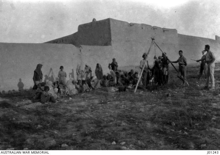 | Keywords: Bijar in First World War (1914-1918) 8.JPG en The daily sheep kill at Bijar 10134 Sergeant John Edward Weld 1st Battalion Canterbury Regiment New Zealand army who died of fever on 17 October 1918 in the helmet is about to cut up the sheep A small party of starving men and women waiting to fight for the entrails Sometimes these parties exceeded 200 between 1914 1918 http //www awm gov au/collection/J01243/ Bijari PD-Australia Uploaded with UploadWizard Bijar World War I photographs with unknown author Watermark |