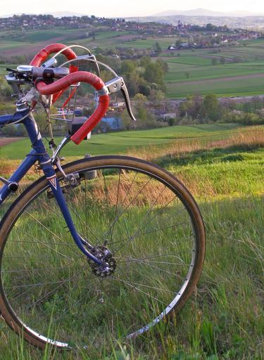 Keywords: bike bicycle trip cycling retro bike steering wheel view malopolska poland on the outside of the