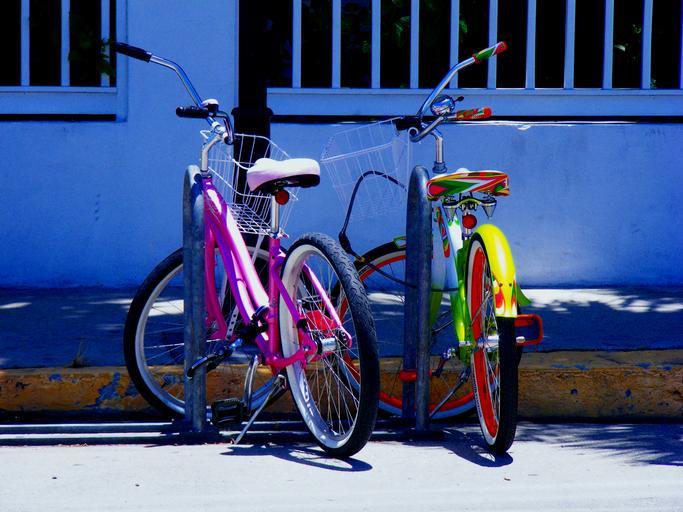Keywords: bikes bicycles two wheels transportation cycling colorful pair couple color