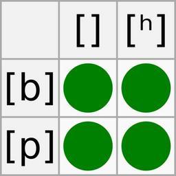 | Keywords: Bilabial plosives 4.svg  en Table of bilabial plosive phones showing all present as in Hindi/Urdu Own work by uploader hand-written SVG to match design of original bitmap version Qef 2009-09-20 Original bitmap version File Bilabial plosives 4 PNG cc-zero Minimal pairs |