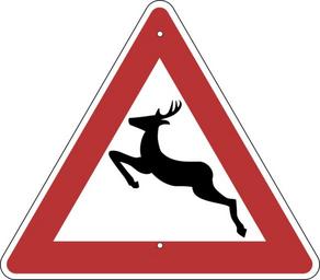 | Keywords: Bild 10 a - Wildwechsel, StVO DDR 1964.svg de Bild 10 a Wildwechsel StVO DDR 1964 Verkehrszeichen der Deutschen Demokratischen Republik nach der Novelle der Straßenverkehrsordnung StVO von 1964 <br /> Die Ausführung dieses Schildes richtet sich nach den im April 1967 bekanntgegebenen Normen TGL 10629 Blatt 2 Leiteinrichtungen für den Straßenverkehr “ Verkehrszeichen “ Schilder und TGL 10629 Blatt 3 Leiteinrichtungen für den Straßenverkehr “ Verkehrszeichen “ Symbole Farbe Schrift Die Farbgrenzen werden deffiniert nach der im Februar 1967 bekanntgegebenen Norm TGL 20684 Blatt 6 Signallichter “ Farben und Farbgrenzen im Verkehrs “ Ortsfeste Signallichter im Straßenverkehr Alle zwei genannten Normen wurden am 01 01 1968 verbindlich TGL 20684 Blatt 6 war ein Ersatz für die ältere Norm TGL 06163 vom November 1962 die bei Einführung der StVO von 1964 galt Damals hatte es noch keine durch die CIE-Normfarbtafel festgelegten Farbgrenzen gegeben Die normierten Bohrlöcher im Schild nach TGL 10629 Tabelle 2 sind behördlich vorgeschrieben und daher unverzichtbarer Bestandteil bei diesen Verkehrszeichen und werden somit in der Abbildung wiedergegeben Anwendung fand bei der Einführung dieser StVO noch die Typfarbkarte 5/62 und ab dem 01 10 1969 die verbindlich eingeführte Farbkarte nach TGL 21196 TGL 21196 vom Januar 1969 Anstrichstoffe “ Farbregister Typfarbkarte 5/62 Rot 3000 RAL-Farbtonregister 840 R 3000 TGL 21196 1969 0605 žSignalrot Lab L 44 78 a 50 80 b 26 62 Zur CIELab-Umwandlung siehe TGL 21196 Juni 1987 Anstrichstoffe “ Farbregister “ Vorzugsfarben own Mediatus 08 März 2016 Herstellungsdatum other fields + Signs User Mediatus/no-new-version Cc-zero PD-Vz historisch SVG road signs in East Germany 10a Triangular warning road signs of East Germany 10a svg Diagrams of danger warning road signs of East Germany 1964 set 10a svg Diagrams of danger warning road signs of East Germany 1971 set 10a svg Deer-related warning road signs |