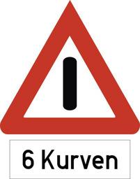 | Keywords: Bild 1 - Allgemeine Gefahrstelle mit Zusatztafel 6 Kurven.svg de Bild 1 - Allgemeine Gefahrstelle mit Zusatztafel 6 Kurven Diese Zeichenkombination ist für 1938 belegt Quelle K Pfanstiel Hrsg žLehrbuch für Kraftfahrer aller Klassen Degener Verleg 1938 S 61 Dem Rotton des Warnzeichens wurde die Farbkarte RAL 840 B 2 zugrundegelegt die im Juni 1932 eingeführt worden ist K Pfanstiel Hrsg žLehrbuch für Kraftfahrer aller Klassen Degener Verleg 1938 S 61 Interpretiert und gezeichnet von Mediatus Die hier gezeigte Schriftype ist eine ebenfalls von Mediatus entwickelte Variante aus historischen Zeichen Mediatus 2016-07-15 Herstellungsdatum other fields + Signs User Mediatus/no-new-version Cc-zero PD-Vz historisch German language signs 01 svg SVG road signs in Germany 01 Diagrams of additional signs of Germany 1938 set 01 Diagrams of triangular warning road signs with |