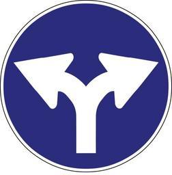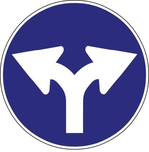 | Keywords: Bild 26b - Vorgeschriebene Fahrtrichtung - Rechts oder links, StVO 1956.svg  de Bild 26b Vorgeschriebene Fahrtrichtung “ Rechts oder links Für den Blauton wurde das RAL-Farbtonregister 840 R gewählt Der dort verzeichnete Ton ist in der Abbildung wiedergegeben Verkehrszeichen nach den Vorgaben der StVO in der Fassung vom 29 März 1956 Quelle Bundesgesetzblatt Jahrgang 1956 Nr  19 S  359 Tag der Ausgabe Bonn 29 Mai 1956 own Mediatus 2013-09-03 v Cc-zero PD-VzKat Diagrams of regulatory road signs of Germany 1956 set 26b Turn left or right road signs |