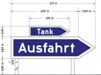 | Keywords: Bild 3 - Ausfahrt mit Zusatzschild Tank, RAB T1 Jwkb 286, 1939.svg de Bild 3 Pfeilschild žAusfahrt mit Zusatzschild žTank nach der Anlage zur technischen Vorschrift Reichsautobahn T-1 Jwkb 286 vom 12 August 1939 Dort wird das Schild als žBild 3 bezeichnet Die Originalbemaßung aus der in der Vorschrift abgebildeten Skizze wird hier vollständig wiedergegeben Nähere Maßangaben zur Breite der weißen Umrandung oder zur Schriftgröße werden nicht gemacht Der Blauton entstammte der RAL-Farbkarte 840 b2 und war 32 h Nach dem Krieg galten die Reichsautobahn-Vorkriegsbestimmungen noch einige Zeit als Bundesgesetz weiter Vorschrift Reichsautobahn T-1 Jwkb 286 vom 12 August 1939 gezeichnet und interpretiert durch Mediatus Mediatus 2015-08-24 other fields + Signs User Mediatus/no-new-version Cc-zero PD-Vz historisch SVG road signs in Germany German language signs Diagrams of motorway road signs of Germany 1939 set Reichsautobahn signs Blue and white signs |