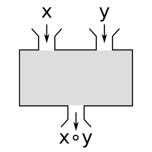 Keywords: Binary operations as black box.svg en Binary operations as black box de Verdeutlicht die Idee binärer Operatoren mittels Black Box-Modell 2016-09-21 own Talonnn other versions cc-zero Elementary mathematics Algebraic structures