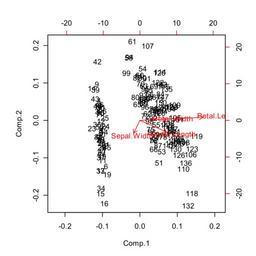 Keywords: Biplot of Anderson's Iris data set.svg Biplot of the Principal components analysis of Anderson's Iris data set The SVG was created with R's <tt>biplot</tt> function using the <tt>CairoSVG</tt> device of the <tt>Cairo</tt> R package I created this work entirely by myself 2008-09-24 Calimo library Cairo CairoSVG Biplot_of_Anderson's_Iris_data_set svg biplot princomp iris 1 4 scale TRUE dev off References Gabriel K R 1971 The biplot graphic display of matrices with application to principal component analysis Biometrika 58 3 453-467 Created with R Statistical charts Biplots Plots |