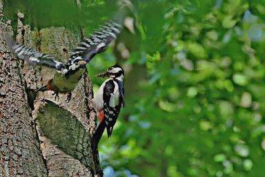 Keywords: bird birds great spotted woodpecker nature flight fly feather forest animal animal portrait bird couple