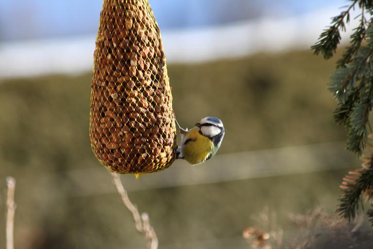 Keywords: bird blue tit tit garden small bird foraging feeding young nature songbird animal eat fat balls claws out twitter wildlife photography animal world food spring