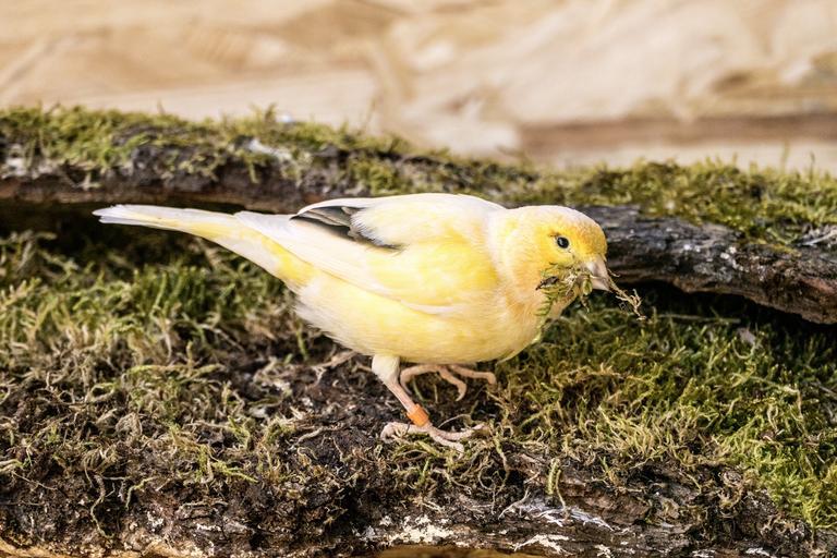 Keywords: bird canary yellow moss nature spring wing bill animal world pets cage