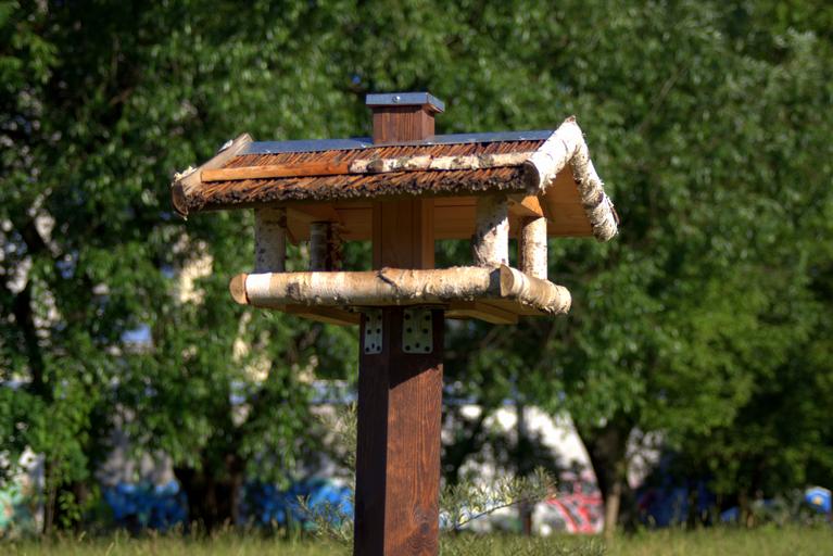 Keywords: bird feeding tray shed wooden birds feeding ornament park