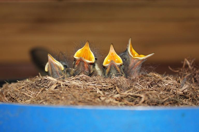 Keywords: bird nest house rotschwänzchen hatching hunger nesting place black redstart fly young