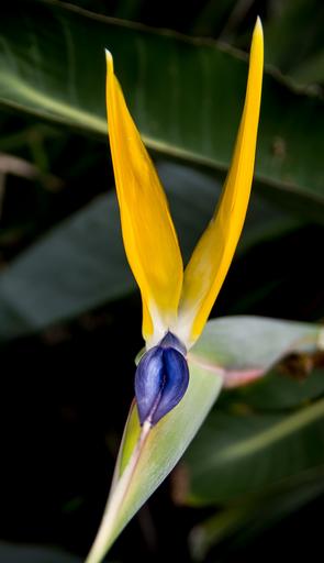 Keywords: bird of paradise flower flower petals sun lit garden yellow blue strelitzia blossom bright exotic