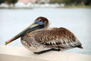 Keywords: bird pelican water bird birds nature water waterfowl animals pelicans rest relax calm sea suspicious ocean