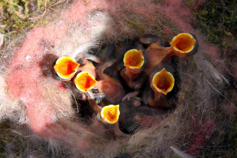 Keywords: bird's nest nest great tits bill chicks feeding hungry bird tit fly feed animals nature small bird plumage cute sitting songbird yellow birds hunger bird breeding young birds babies hatching eat blind small young orange signal colour