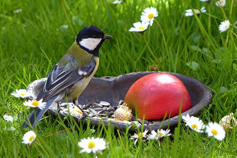 Keywords: bird tit young animal foraging garden