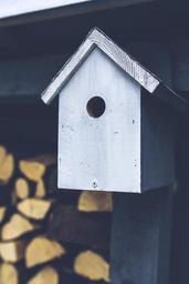 Keywords: birdhouse bird gray grey wood wooden feeding help over winter winter