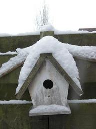Keywords: birdhouse snow winter cold snowy white snow landscape