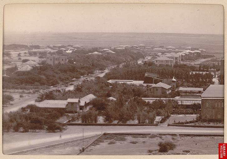 Keywords: Bird's eye view, Clifton Road -Karachi in 1890-.jpg Bird's eye view Clifton Road Karachi Photograph with a view looking along Clifton Road in Karachi taken by an unknown photographer c 1900 from an album of 46 prints titled 'Karachi Views' Views 21-32 from this album join together to form a 360 degree panorama of the city from the tower of Trinity Church Part of the Frere Hall can be seen at the extreme right Clifton is now one of the most exclusive residential areas of the city Karachi one of the world's largest metropolises was once the capital of Pakistan It is now the capital of the Sindh province in the lower Indus valley and is the financial and commercial centre of Pakistan This huge city was however developed only in the mid-19th century after the British conquest of Sindh Karachi is built around a bay which is a natural harbour protected from storms by a group of small islands Its history prior to the 18th century is sketchy but it is believed to be the ancient port of Krokala on the Arabian Sea visited by Alexander's admirals in 326 BCE The small fishing village was known as Kolachi-jo-Goth in the 18th century and then became a trading post under the Kalhoras and the Talpur rulers of Sindh but the port remained small With the British development of its harbour it grew into the large city of Karachi and an important centre of trade particularly of cotton and wheat http //www collectbritain co uk/ The British Library photo link http //www collectbritain co uk/personalisation/object cfm uid 019PHO000000425U00029000 largeimage 1 largeimage here 1900 Author PD-old PD-UK-unknown Karachi 1890s Pakistan in the 1890s
