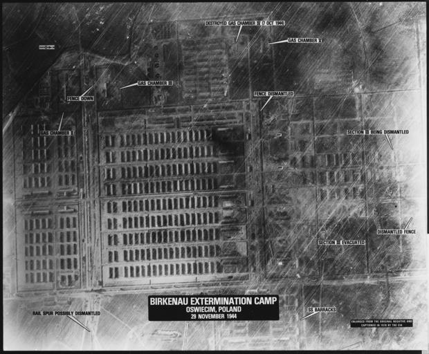 | Keywords: Birkenau Extermination Camp - Oswiecim, Poland - NARA - 305906.jpg Scope and content General notes 305906 Local identifier 263-AUSCHWITZ-19 13 National Security Council Central Intelligence Agency Directorate of Intelligence National Photographic Interpretation Center 1961 - 1973 Cartographic and Architectural Records Section Special Media Archives Services Division NWCS-C National Archives at College Park 8601 Adelphi Road College Park MD 20740-6001 1944-11-29 Record group Record Group 263 Records of the Central Intelligence Agency 1894 - 2002 Record group ARC 590 Aerial Photography of Auschwitz Concentration Camp compiled 1973 - 1973 documenting the period 1944 - 1945 Series ARC 305893 File unit File unit ARC Variant control numbers NAIL Control Number NWDNC-263-AUSCHWITZ-19 13 Other versions <gallery> File Birkenau_Extermination_Camp_-_Oswiecim _Poland_-_NARA_-_305906 tif tif File Birkenau_Extermination_Camp_-_Oswiecim _Poland_-_NARA_-_305906 jpg jpg </gallery> NARA-cooperation PD-USGov The Holocaust 1944 1944 in Poland Auschwitz II aerial photographs 19441129 |