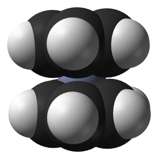 Keywords: Bis(benzene)chromium-from-xtal-2006-3D-SF.png Space-filling model of the bis benzene chromium molecule C<sub>6</sub>H<sub>6</sub> <sub>2</sub>Cr i e C<sub>12</sub>H<sub>12</sub>Cr from the crystal structure Colour code Carbon C black Hydrogen H white Chromium Cr grey-blue Crystal structure by X-ray diffraction from http //dx doi org/10 1021/jp057516v J Phys Chem A 2006 110 6545 “6551 Model constructed in http //www crystalmaker com/ CrystalMaker 8 1 Image generated in http //accelrys com/products/discovery-studio/visualization/discovery-studio-visualizer html Accelrys DS Visualizer Own 2009-07-06 Ben Mills Benjah-bmm27 Images by Ben Mills Space-filling models Crystal structures of bis benzene chromium |