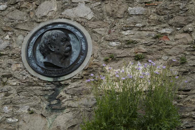 Keywords: bismarck memorial plaque board head person personality famous politician face profile plate wall castle