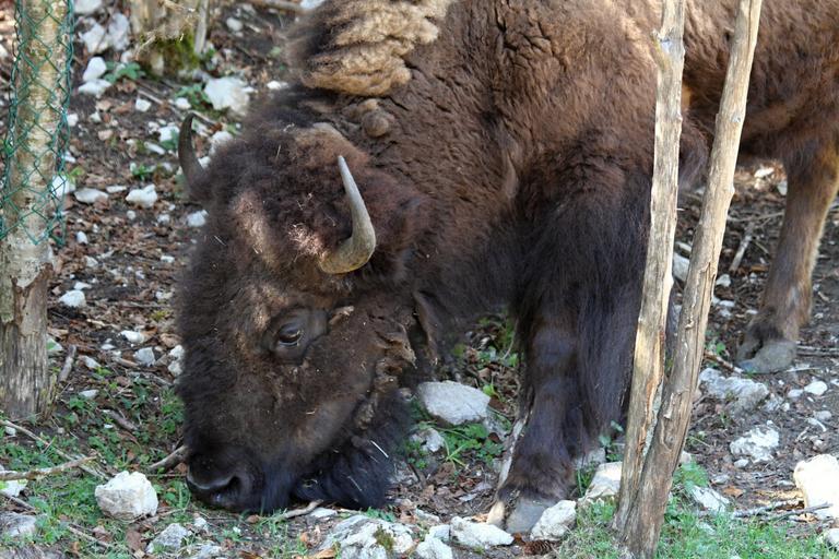 Keywords: bison horns shaggy animal buffalo wildlife park nature prairie graze mammal