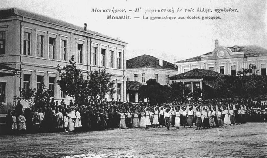 Keywords: Bitola Greek School Monastiri.JPG en A Greek school of Monastir modern Bitola Macedonia early 20th century fr Monastir -La gymnastique aux ecoles grecques el οναστηρίον - Η γυμναστική εν τοις ελλην σχολείοις Συλλογική αναμνηστική φωτογραφία η ο οία α εικονίζει τις γυμναστικές ε ιδείξεις του Ελληνικού σχολείου οναστηρίου στις αρχές του εικοστού αιώνα http //www imma edu gr/imma/dbs/Artifacts/index html lq CE A0 CE 93 CE 94 CE 9C start 593 show 1 Author early 20th Century Anonymous-EU Ottoman Greeks Historical images of Bitola Schools in Bitola |