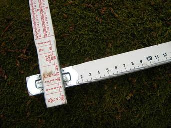 | Keywords: Bitterlichstab-06.jpg Ein Bitterlichstab als Multifunktionsgerät - hier als Halbschenkelkluppe für die Ermittlung des Baumdurchmessers in 1 30 m Höhe BHD A bitterlich stick as half thigh caliper for measuring of Diameter DBH own 2009-05-24 Moorochs Moorochs Bitterlich stick |