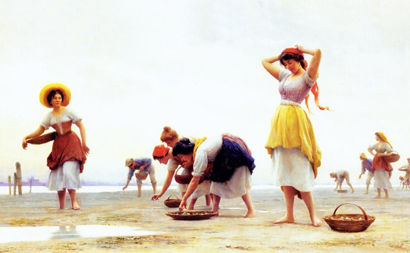Keywords: Blaas mussel-gatherers.jpg en The Mussel Gatherers repro from art book Eugene de Blaas 1843-1931 oil on canvas 109 2 x 182 7 cm PD-old Mussels in art Eugene de Blaas