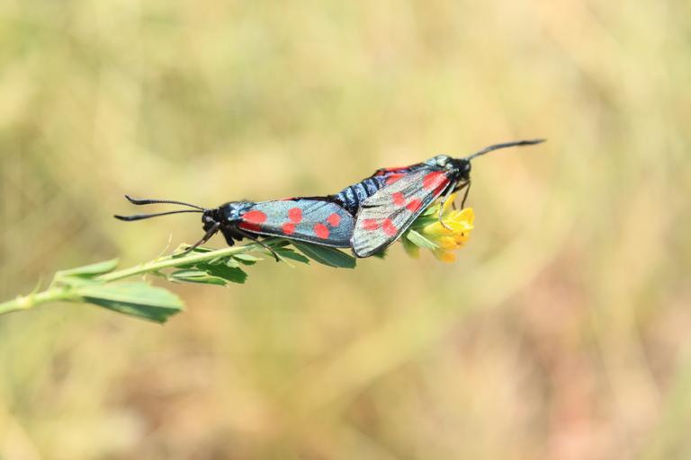 Keywords: black butterflies butterfly copulation dots mating nine-spotted red spot insects