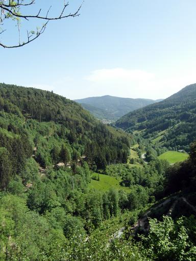 Keywords: black forest valley outlook view landscape nature summer hiking hill green water protection