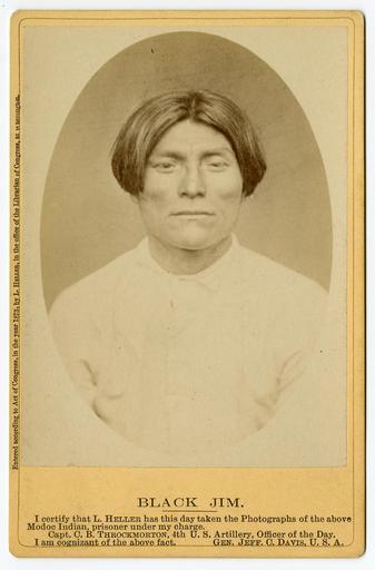 | Keywords: people photo border Repository: California Historical Society Collection: Photographic portraits of Modoc Indians of the Modoc War Photographer: Heller, Louis Herman Date: 1873 General note: Printed on mounts: I certify that L. Heller has this day taken the photographs of the above Modoc Indian prisoner under my charge. Capt. C.B. Throckmorton, 4th U.S. Artillery, Officer of the Day. I am cognizant of the above fact. Gen. Jeff. C. Davis, U.S.A. General note: Photos were published by Carleton E. Watkins. Watkins' Yosemite Art Gallery advertisement on verso. Format: Carte de visite Call Number: PC 006 Digital object ID: PC 006_11.jpg Preferred citation: Black Jim, Photographic portraits of Modoc Indians of the Modoc War, PC 006, courtesy, California Historical Society, PC 006_11.jpg Repository: California Historical Society Collection: Photographic portraits of Modoc Indians of the Modoc War Photographer: Heller, Louis Herman Date: 1873 General note: Printed on mounts: I certify that L. Heller has this day taken the photographs of the above Modoc Indian prisoner under my charge. Capt. C.B. Throckmorton, 4th U.S. Artillery, Officer of the Day. I am cognizant of the above fact. Gen. Jeff. C. Davis, U.S.A. General note: Photos were published by Carleton E. Watkins. Watkins' Yosemite Art Gallery advertisement on verso. Format: Carte de visite Call Number: PC 006 Digital object ID: PC 006_11.jpg Preferred citation: Black Jim, Photographic portraits of Modoc Indians of the Modoc War, PC 006, courtesy, California Historical Society, PC 006_11.jpg |