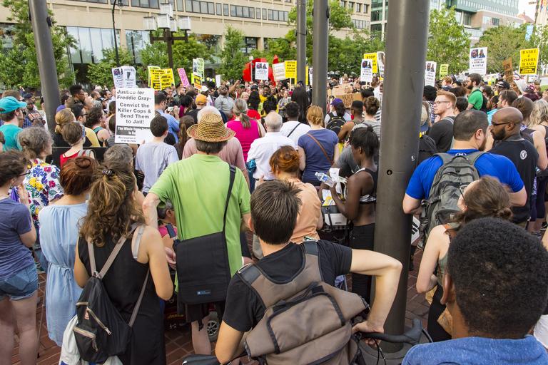 Keywords: black lives matter protest march arrest demonstration speech signs police