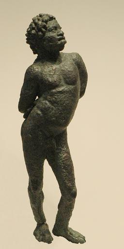 Keywords: Black slave Louvre Br361.jpg Black youth with hands bound behing his back Found in the Fayum near Memphis Egypt bronze 2nd “1st century BC Adolescent noir aux mains liées Statuette en bronze trouvée dans la région du Fayoum non loin de Memphis Égypte IIe ou Ier siècle av J -C H 13 2 cm 5 in Museum Louvre Department of Greek Etruscan and Roman Antiquities Sully first floor room 32 object history credit line Purchase 1892 accession number Br 361 Jastrow 2005 other versions Atelier graphique Ancient Greek bronze statuettes Hellenistic sculptures Ancient Egyptian art from Faiyum Slavery in ancient Greece Statues of nude standing boys Africans in ancient Greek art Greek antiquities in the Louvre - Room 32 Statues of people of Africa