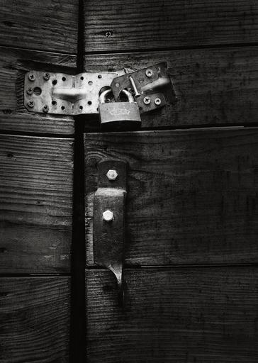 Keywords: black and white castle structure old padlock wood door wooden door closed