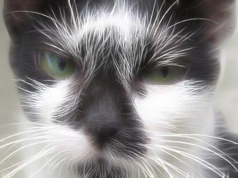 Keywords: black white cat house cat mustache feather